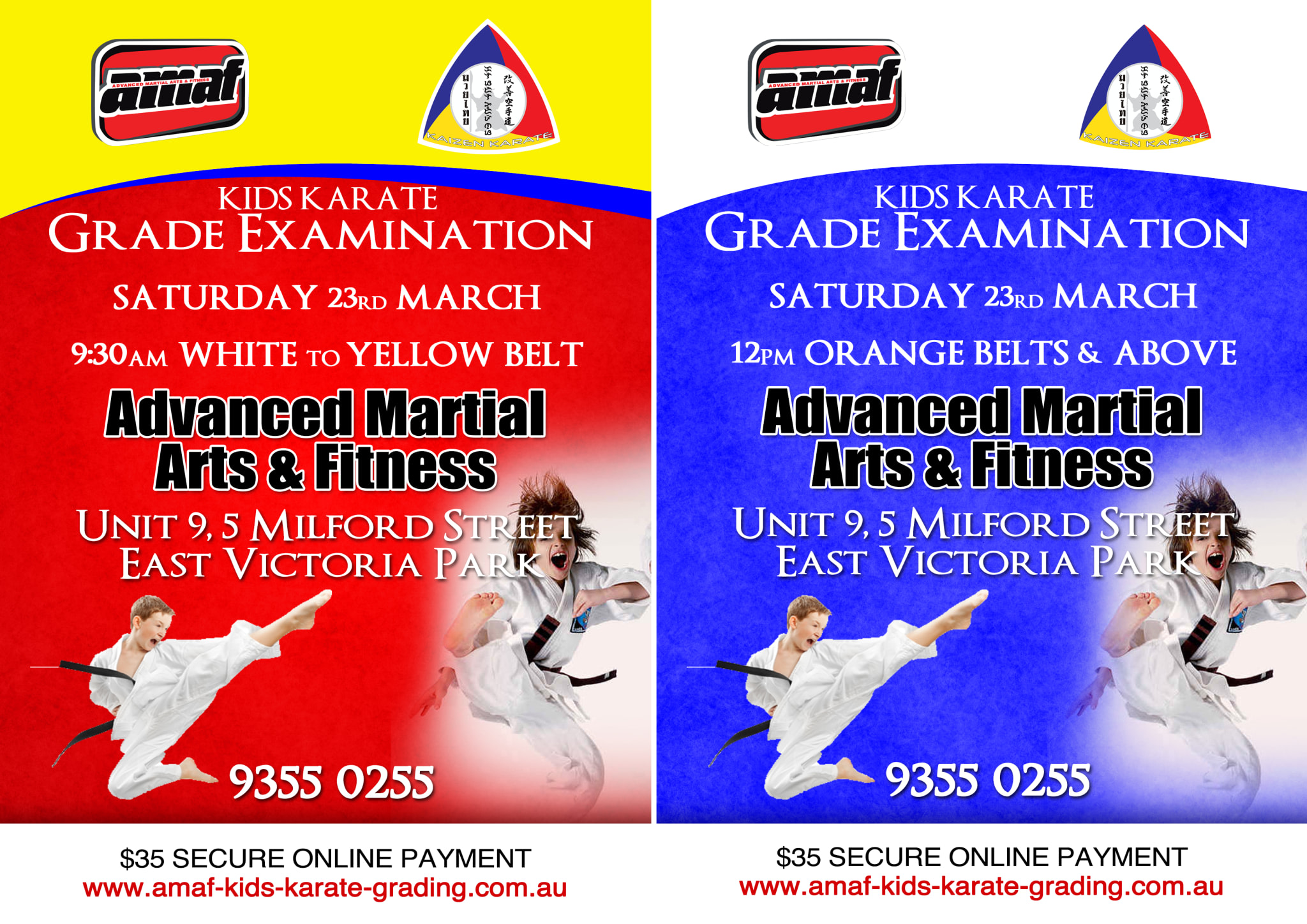 Parents please have your Karate Kids here at AMAF at least 20 minutes before the set grade time as we start the first grading at 9:30am sharp!